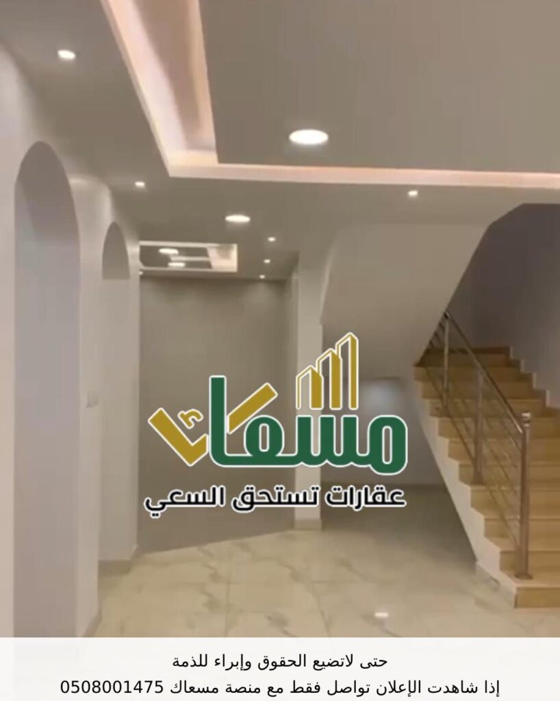 - الدور الأرضي: مجلس استقبال كبير قابل للتجزئة إلى قسمين (مجلس وغرفة طعام) مع باب سحاب، صالة، مطبخ، مستودع، حمامين، كراج، وحوش.