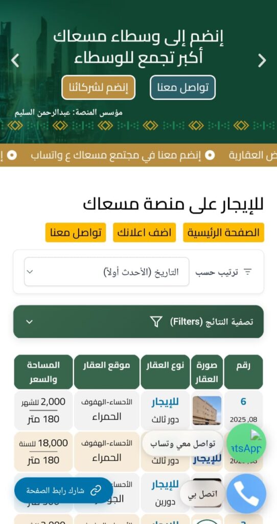 عروض الايجار علي منصة مسعاك
