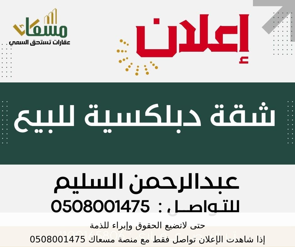 فرصة للبيع شقة دبلكسية في الدانة بالهفوف